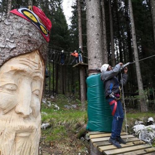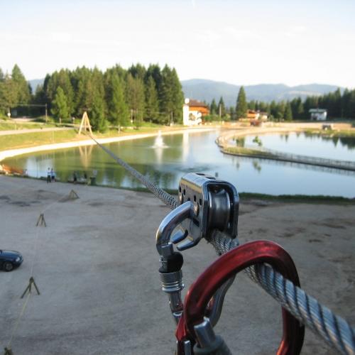 In meno di un anno a Roana siamo passati dalle parole ai fatti. L’area ci è piaciuta subito così come tutti gli interlocutori locali. È stato facile per noi decidere di investire in questo progetto. Siamo partiti con una configurazione media nel 2007 ma dopo 2 anni abbiamo iniziato ad aggiungere percorsi e 2 teleferiche da 170 m che sorvolano il laghetto. Oggi vi sono più di 100 elementi su 9 percorsi. Molto apprezzata anche la grande tettoia con parete d’arrampicata coperta ad uso libero. Il parco è da sempre gestito da Acropark ed ha visto transitare ormai più di 200.000 visitatori.