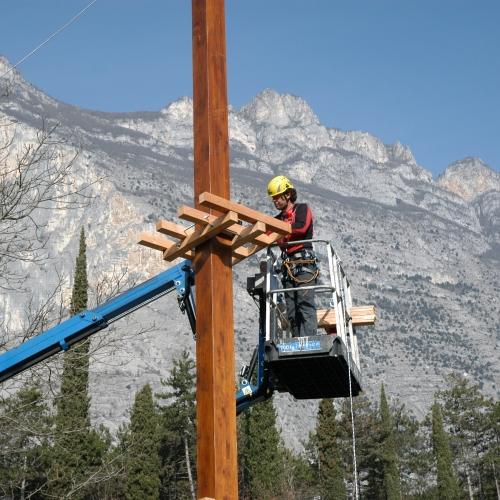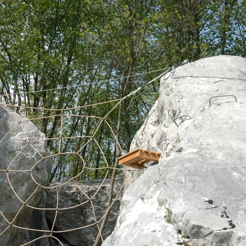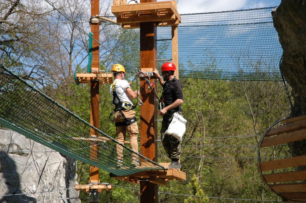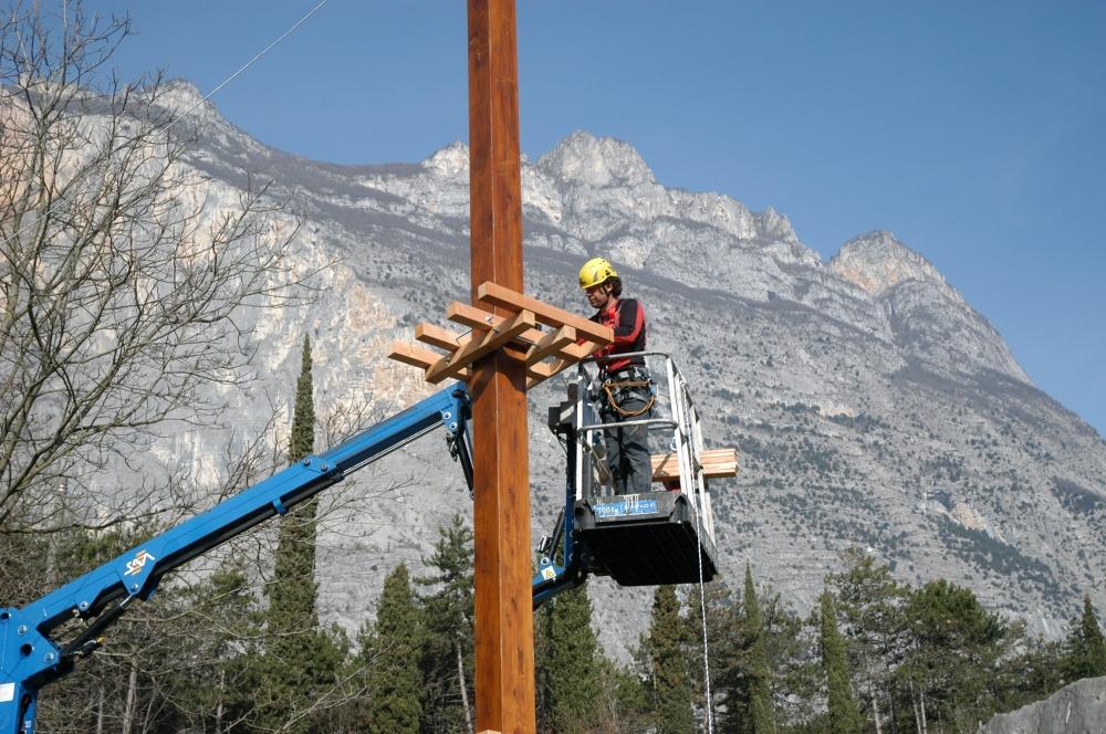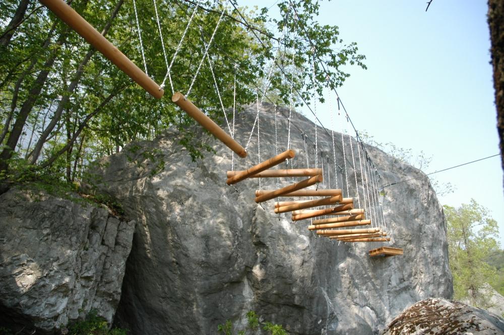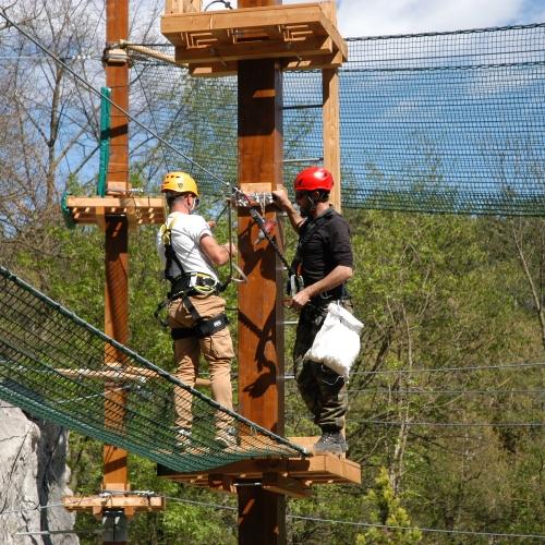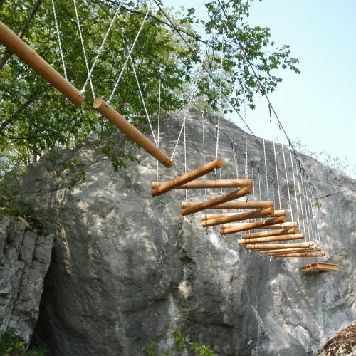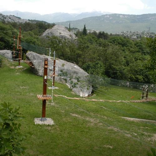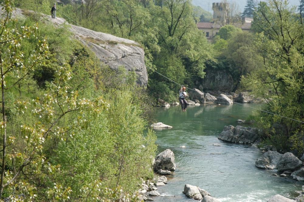 Grande impegno per l'innovazione nel parco di Drò, in trentino. In questo sito si è ben dimostrata la nostra vocazione di disegnare un parco sfruttando le specificità del territorio. Pochi alberi, massi enormi (qui si chiamano marocche) ed un vero fiume da poter attraversare. Ecco allora passaggi ancorati su roccia e pali artificiali e 2 teleferiche lunghe più di 200 metri che sorvolano scogli e rapide. In totale 50 elementi su 5 percorsi.